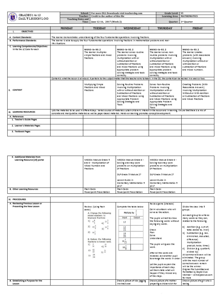Lesson Guide in Elementary Mathematics Grade 6. 16 rows Learning Material. At the moment DepEd is in the process of uploading these modules to their official.