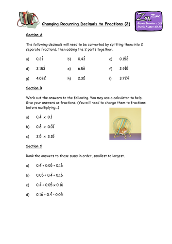 Converting Recurring Decimals Into Fractions Worksheet Tes